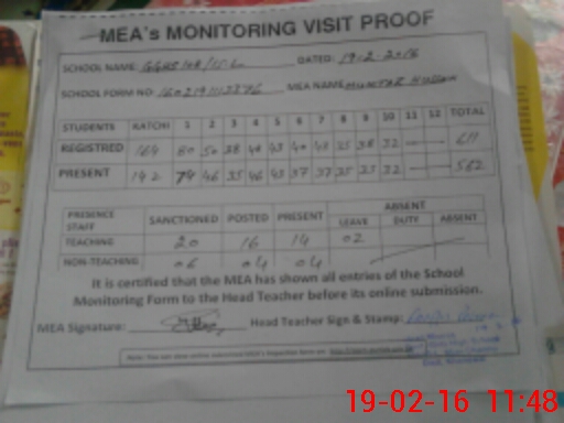 | Certified that this School was Inspected by the Undersigned MEA/DMO Today and the Information Stated Above is as Per Record. | |||||