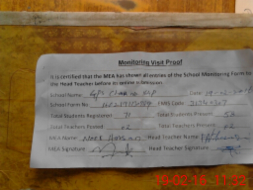 | Attendance Register | Head Teacher | MEA with School | Visit Proof |