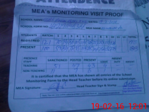 | Attendance Register | Head Teacher | MEA with School | Visit Proof |