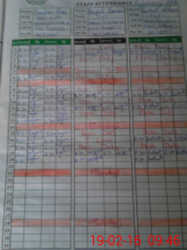 | CNIC | Full Name | Designation | R/C | Absence During Last Calender Month |
