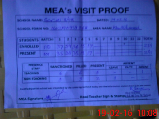 | Certified that this School was Inspected by the Undersigned MEA/DMO Today and the Information Stated Above is as Per Record. | |||||