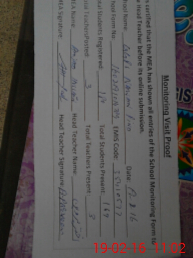 | Certified that this School was Inspected by the Undersigned MEA/DMO Today and the Information Stated Above is as Per Record. | |||||