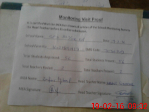 | Certified that this School was Inspected by the Undersigned MEA/DMO Today and the Information Stated Above is as Per Record. | |||||