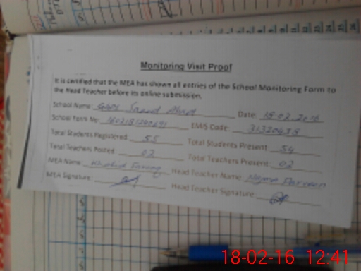 | Certified that this School was Inspected by the Undersigned MEA/DMO Today and the Information Stated Above is as Per Record. | |||||