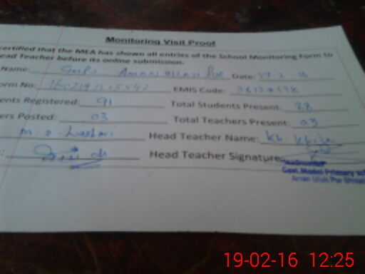 | EMIS Code: 36120178 | Name of School: GMPS AMAN ULLAH PUR SHUJABAD | |||