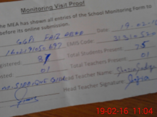 | EMIS Code: 31310520 | Name of School: GGPS FIAZ ABAD | |||