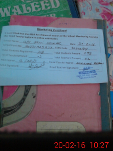 | Certified that this School was Inspected by the Undersigned MEA/DMO Today and the Information Stated Above is as Per Record. | |||||