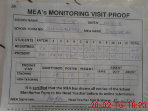 | Certified that this School was Inspected by the Undersigned MEA/DMO Today and the Information Stated Above is as Per Record. | |||||