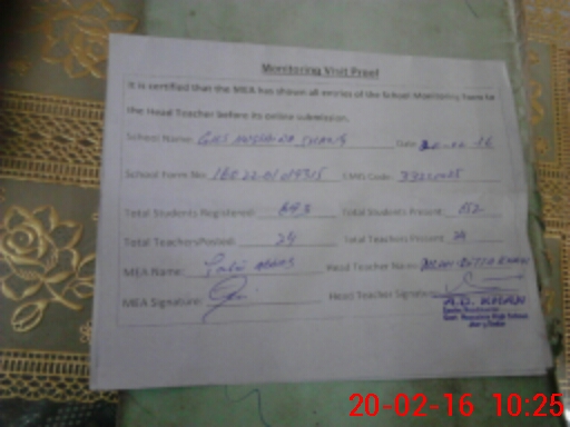 | Certified that this School was Inspected by the Undersigned MEA/DMO Today and the Information Stated Above is as Per Record. | |||||