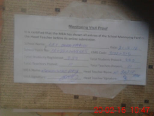 | Certified that this School was Inspected by the Undersigned MEA/DMO Today and the Information Stated Above is as Per Record. | |||||