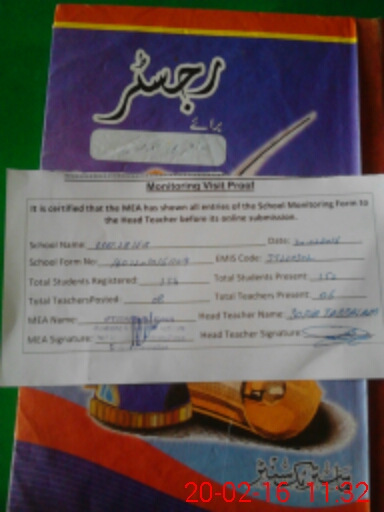 | Attendance Register | Head Teacher | MEA with School | Visit Proof |