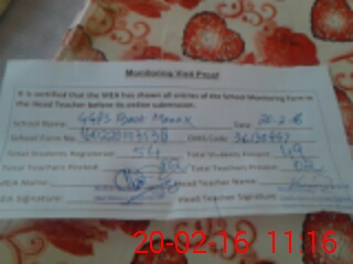 | Attendance Register | Head Teacher | MEA with School | Visit Proof |