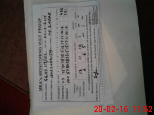 | Monitoring Date: 20-02-2016 | Start Time: 20-02-2016 10:45 AM | End Time: 20-02-2016 11:56 AM | Name of MEA: Mu**** Za**** (S**** | |