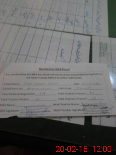 | Attendance Register | Head Teacher | MEA with School | Visit Proof |