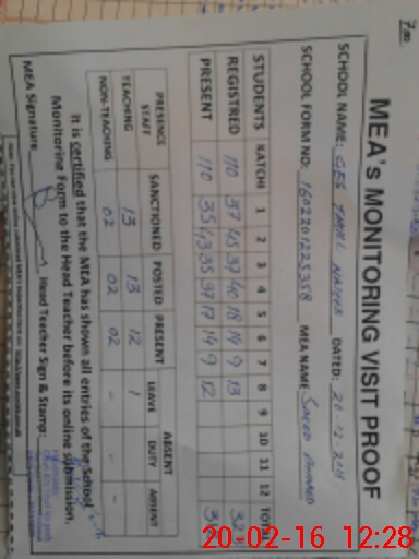 | Attendance Register | Head Teacher | MEA with School | Visit Proof |