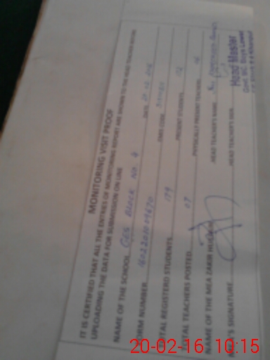 | Monitoring Date: 20-02-2016 | Start Time: 20-02-2016 09:55 AM | End Time: 20-02-2016 10:20 AM | Name of MEA: Za**** Hu**** | |