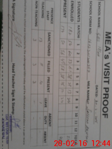 | Certified that this School was Inspected by the Undersigned MEA/DMO Today and the Information Stated Above is as Per Record. | |||||