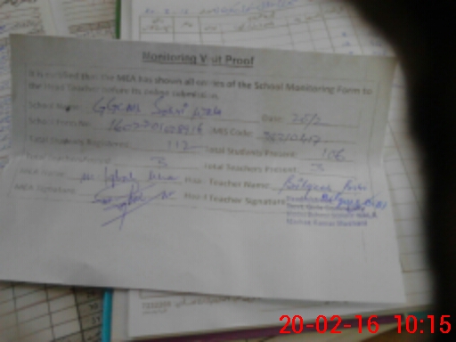 | Attendance Register | Head Teacher | MEA with School | Visit Proof |