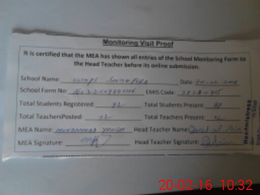 | Attendance Register | Head Teacher | MEA with School | Visit Proof |