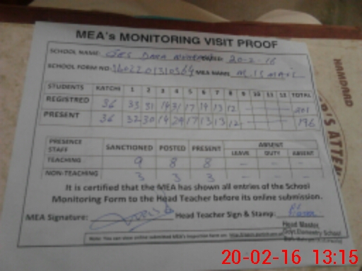 | Attendance Register | Head Teacher | MEA with School | Visit Proof |
