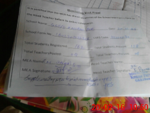 | Attendance Register | Head Teacher | MEA with School | Visit Proof |