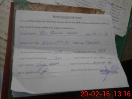 | Certified that this School was Inspected by the Undersigned MEA/DMO Today and the Information Stated Above is as Per Record. | |||||