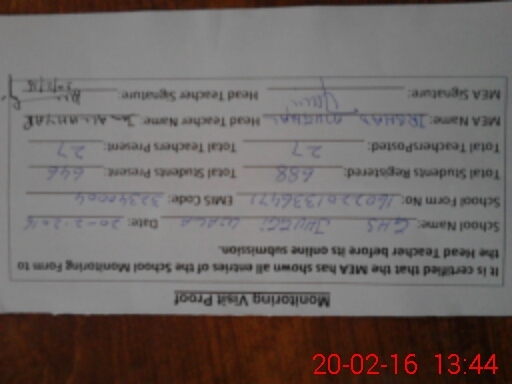 | Certified that this School was Inspected by the Undersigned MEA/DMO Today and the Information Stated Above is as Per Record. | |||||