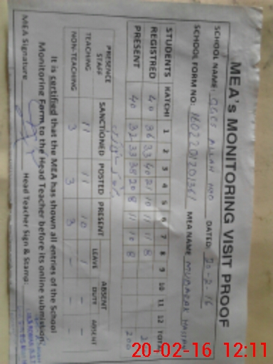 | Certified that this School was Inspected by the Undersigned MEA/DMO Today and the Information Stated Above is as Per Record. | |||||