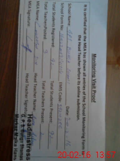 | EMIS Code: 39210256 | Name of School: GPS BUNGA SHAMS | |||
