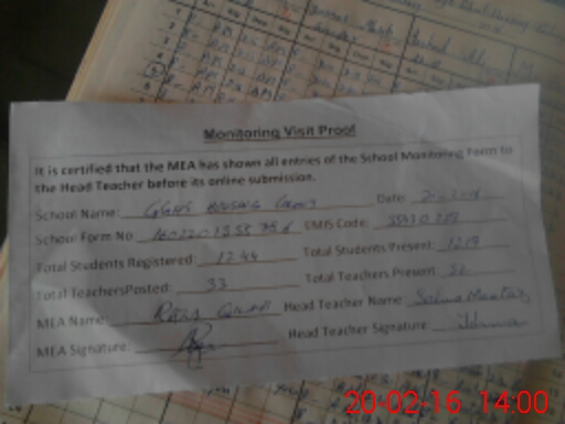 | Attendance Register | Head Teacher | MEA with School | Visit Proof |