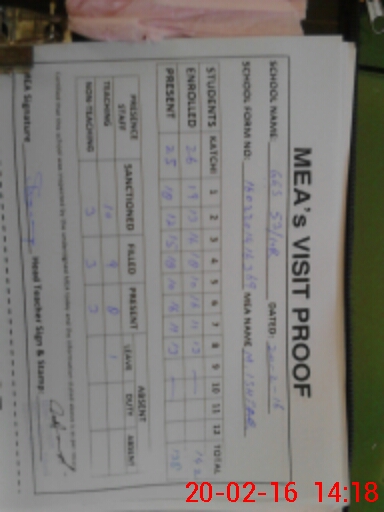 | Attendance Register | Head Teacher | MEA with School | Visit Proof |