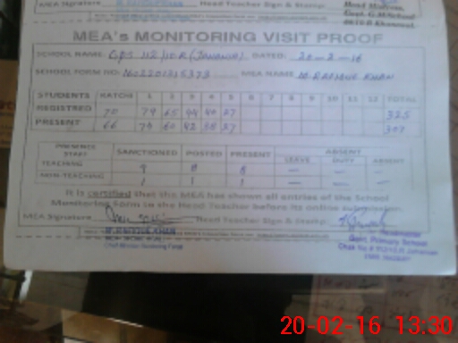 | Certified that this School was Inspected by the Undersigned MEA/DMO Today and the Information Stated Above is as Per Record. | |||||