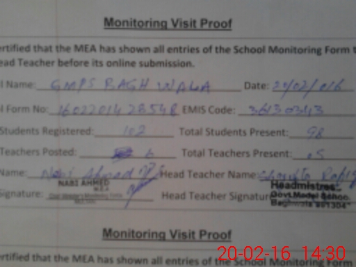 | EMIS Code: 36130343 | Name of School: GMPS BAGH WALA NEAR B Z UNIVERSITY | |||