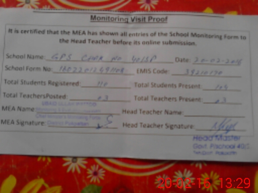 | EMIS Code: 39210170 | Name of School: GPS 40 SP | |||