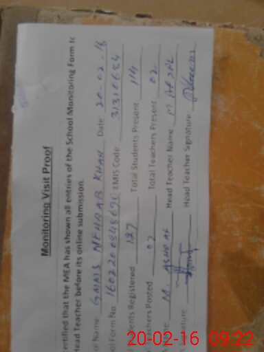 | EMIS Code: 31310684 | Name of School: GPS MEHRAB KHAN | |||