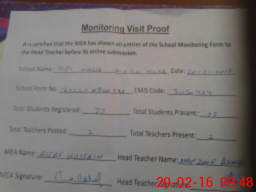| Certified that this School was Inspected by the Undersigned MEA/DMO Today and the Information Stated Above is as Per Record. | |||||