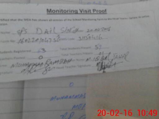 | Certified that this School was Inspected by the Undersigned MEA/DMO Today and the Information Stated Above is as Per Record. | |||||