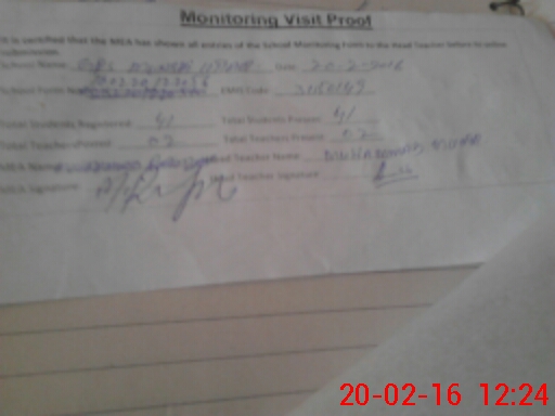 | Attendance Register | Head Teacher | MEA with School | Visit Proof |
