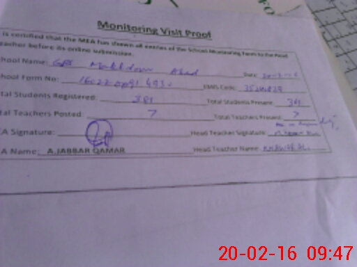 | Certified that this School was Inspected by the Undersigned MEA/DMO Today and the Information Stated Above is as Per Record. | |||||