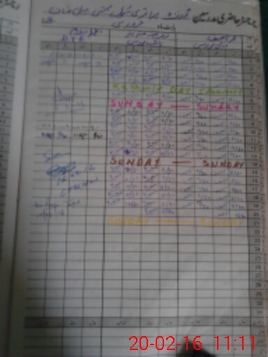 | CNIC | Full Name | Designation | R/C | Absence During Last Calender Month |