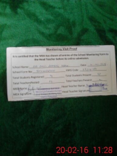 | Attendance Register | Head Teacher | MEA with School | Visit Proof |