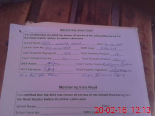 | Attendance Register | Head Teacher | MEA with School | Visit Proof |