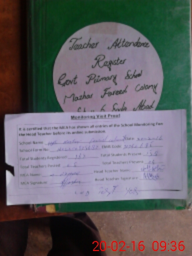 | EMIS Code: 31340685 | Name of School: GPS MAZHAR FARID COLONY | |||