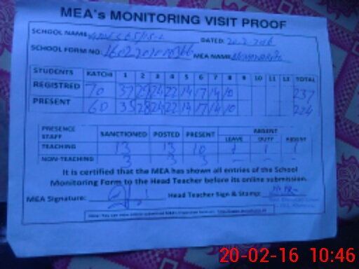 | Certified that this School was Inspected by the Undersigned MEA/DMO Today and the Information Stated Above is as Per Record. | |||||