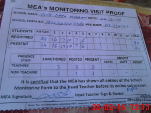| Certified that this School was Inspected by the Undersigned MEA/DMO Today and the Information Stated Above is as Per Record. | |||||