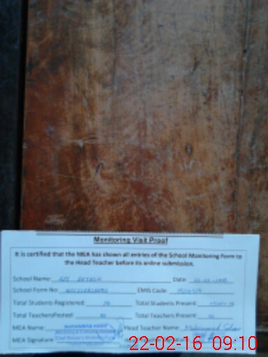| Certified that this School was Inspected by the Undersigned MEA/DMO Today and the Information Stated Above is as Per Record. | |||||