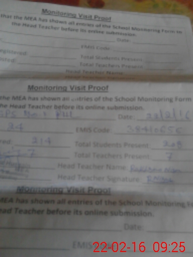 | Attendance Register | Head Teacher | MEA with School | Visit Proof |
