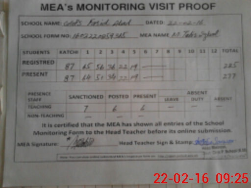 | EMIS Code: 36420354 | Name of School: GGPS FARID ABAD, KHANEWAL | |||
