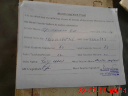 | Certified that this School was Inspected by the Undersigned MEA/DMO Today and the Information Stated Above is as Per Record. | |||||