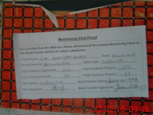 | Certified that this School was Inspected by the Undersigned MEA/DMO Today and the Information Stated Above is as Per Record. | |||||